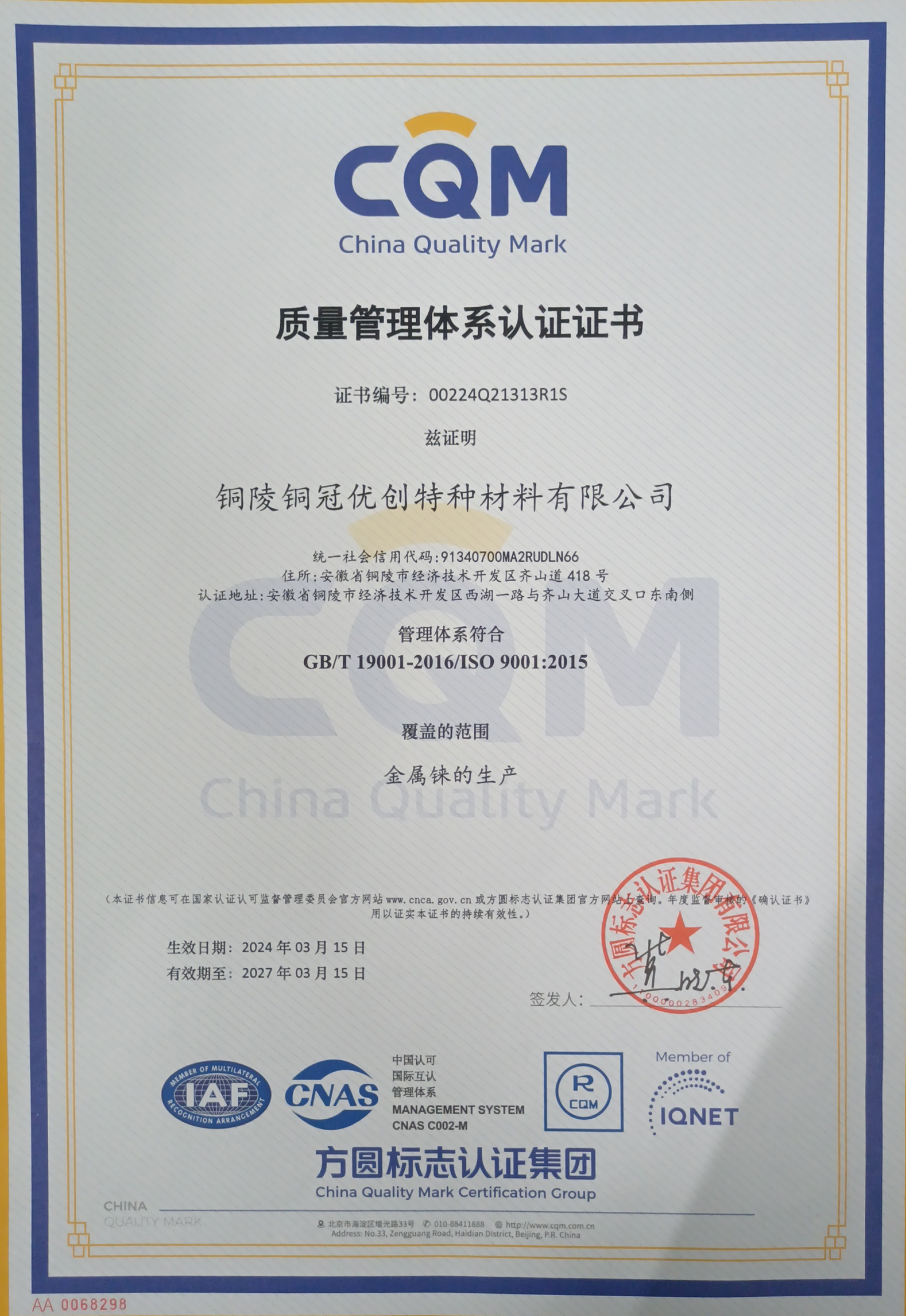 質(zhì)量管理體系認(rèn)證證書(shū)